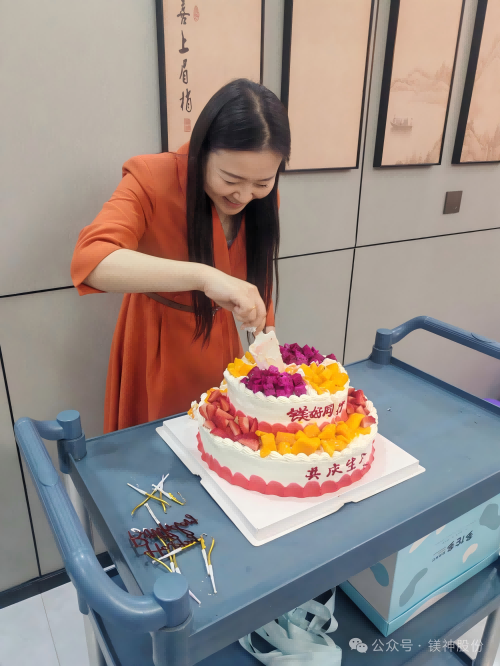 活動開始,公司執行總裁杜玉玲發表了熱情洋溢的致辭。她向在場的壽星們送上真摯的生日祝福和一首《鎂神生日樂》詩詞,獻給壽星們:“馬江雅韻王珊俏,彩段曉改多妙招。王迪明明添活力,楊建議來獻高招。鎂神今日慶生辰,福澤綿長樂逍遙。”