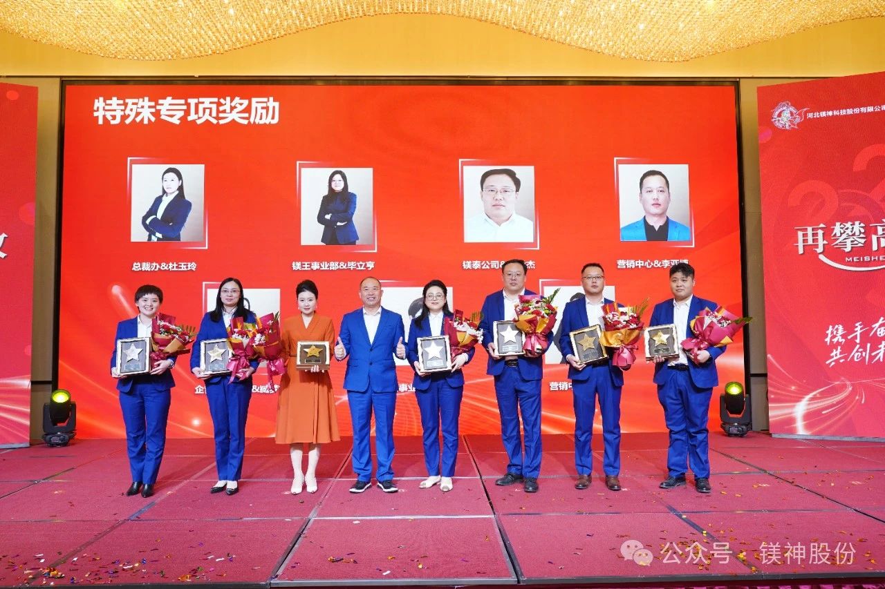 3月31日,河北鎂神科技股份有限公司2024年度總結(jié)暨表彰大會在邢臺市瑞爵酒店舉行,本次共發(fā)放獎金1227.88萬元!其中第四季度提成138.34萬元、銅級榮休紀念獎0.67萬元、私欠清零4.3萬元、評優(yōu)評模76.8萬元、特殊貢獻獎18萬元、優(yōu)秀團隊11萬元、專項獎金179.64萬元、職能中心年終獎72.84萬元、利潤中心分紅698.3萬元、扎根非洲、熱愛非洲、建設(shè)非洲獎28萬。