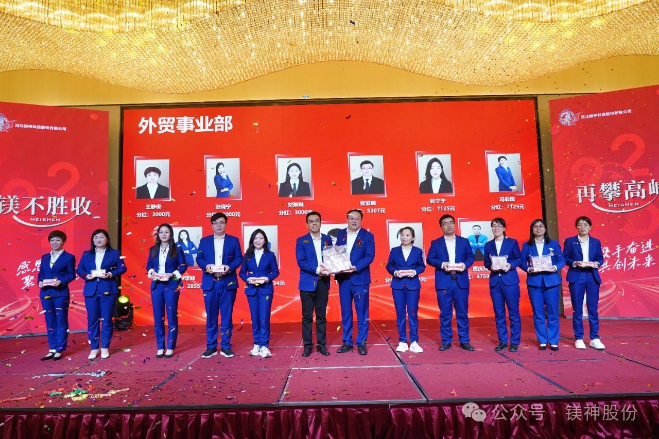 新聞?wù)?3月31日,河北鎂神科技股份有限公司2024年度總結(jié)暨表彰大會在邢臺市瑞爵酒店舉行,本次共發(fā)放獎金1227.88萬元!其中第四季度提成138.34萬元、銅級榮休紀念獎0.67萬元、私欠清零4.3萬元、評優(yōu)評模76.8萬元、特殊貢獻獎18萬元、優(yōu)秀團隊11萬元、專項獎金179.64萬元、職能中心年終獎72.84萬元、利潤中心分紅698.3萬元、扎根非洲、熱愛非洲、建設(shè)非洲獎28萬。