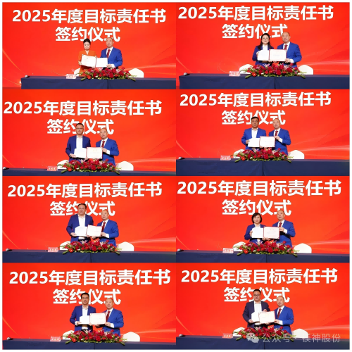 總結(jié)過去是為了更好地奔赴未來,簽約儀式上公司董事長孫文先生與各利潤中心總經(jīng)理、職能中心總監(jiān)共同簽署2025年度目標軍令狀,各級管理者逐級簽訂目標責任書。